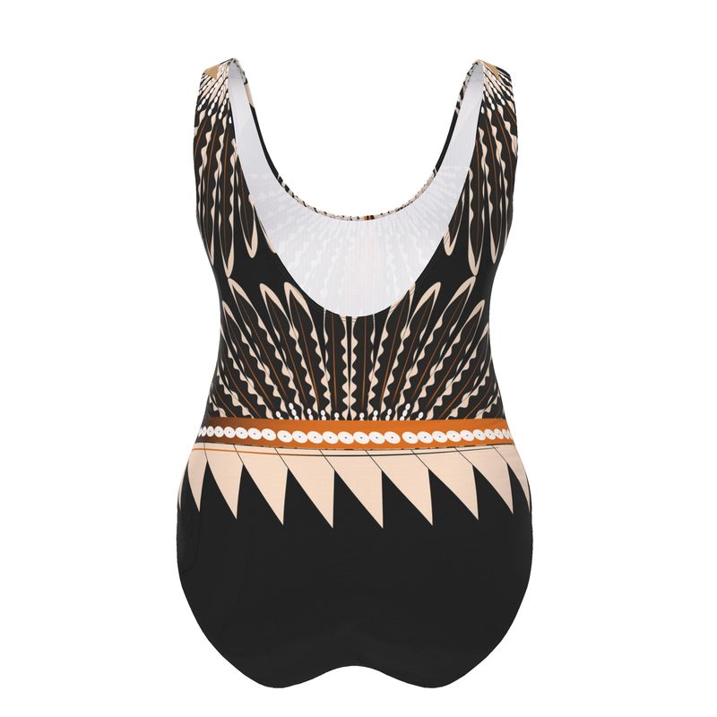 Swim suit with original flicker feather art.