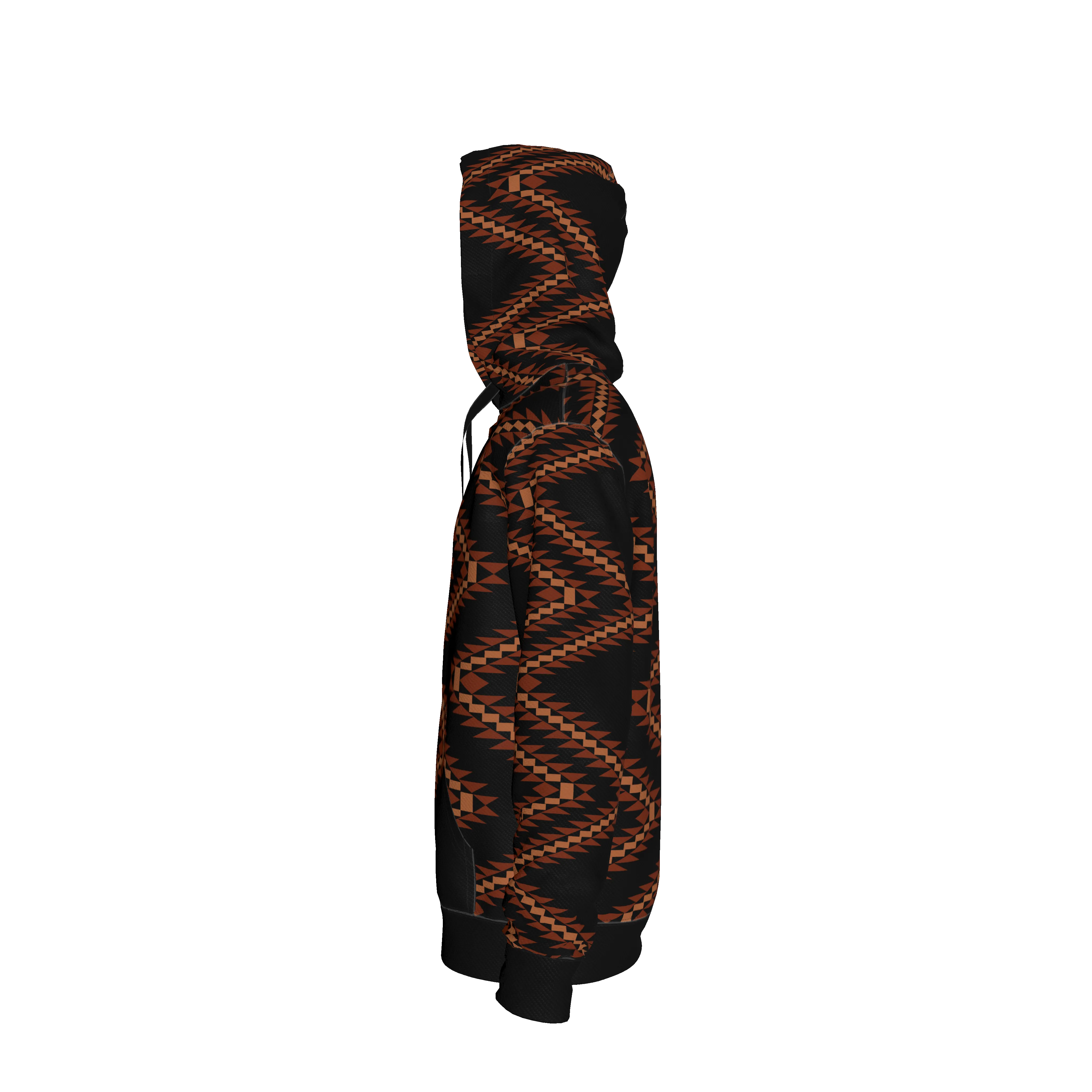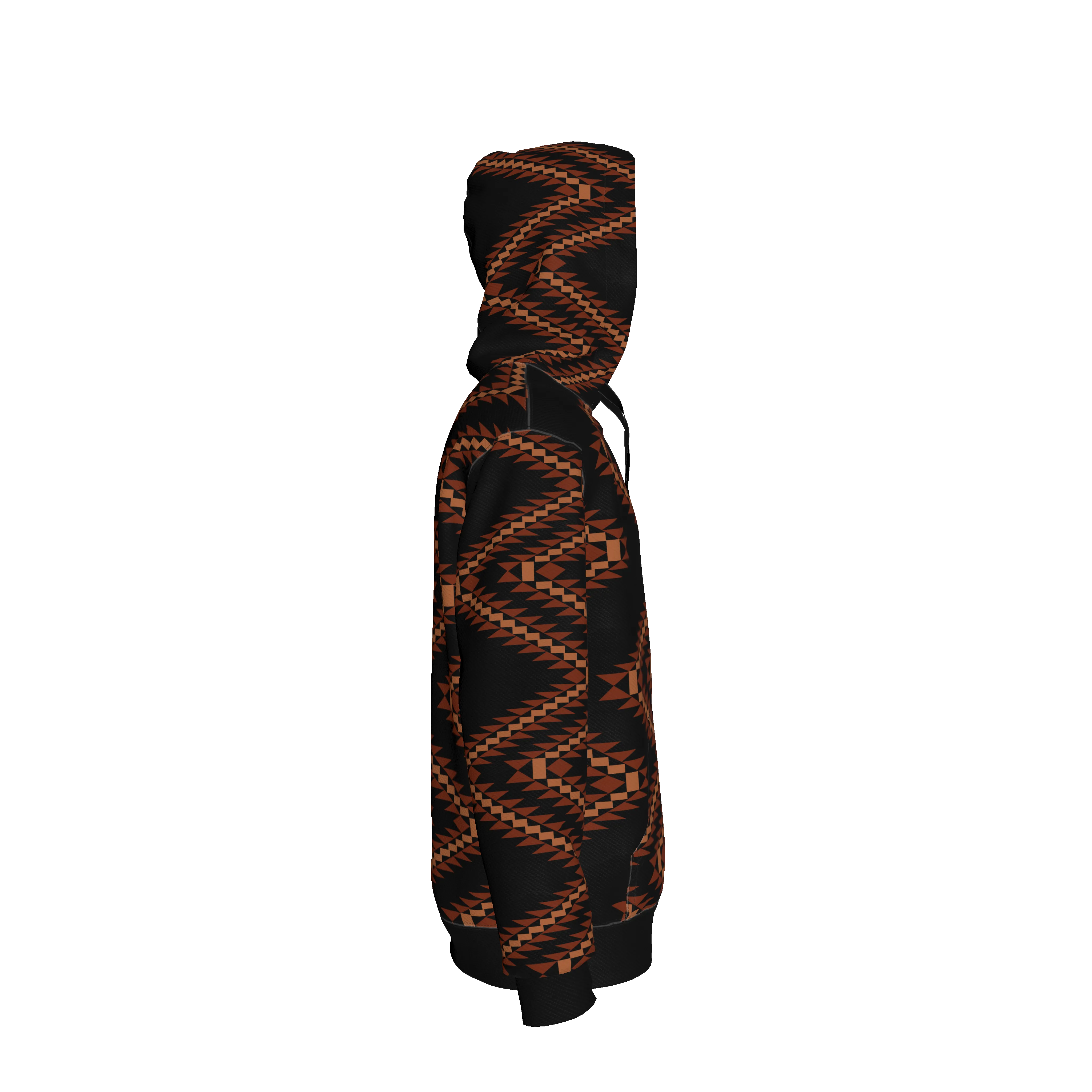 Stand out in comfort with our Basic Hoodie, featuring a striking geometric zigzag pattern in deep rust and black tones. The bold, angular motif gives this hoodie a modern edge while seamlessly pairing with your everyday essentials. Crafted from luxurious heavyweight stretch organic cotton French terry, this hoodie offers a soft hand feel and superior structure. The smooth jersey exterior and plush interior loops keep you cozy, making this the versatile upgrade your closet needs for both style and substance.
