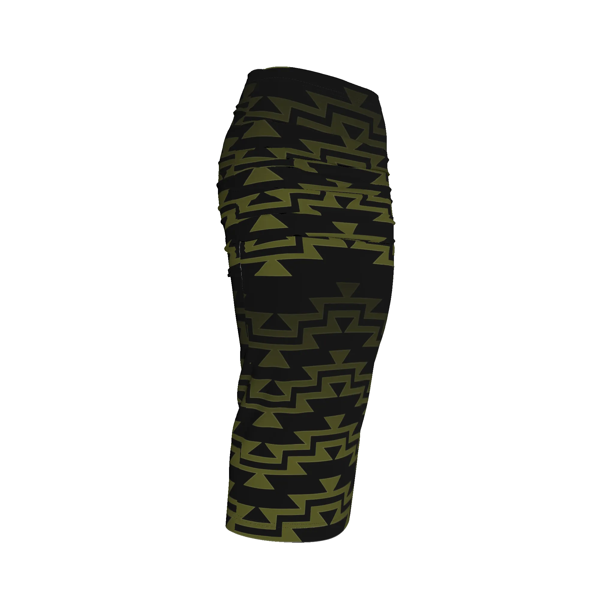 Meet your new statement skirt. This Shirred Midi Skirt features a striking geometric print in earthy olive and black tones, making it ideal for elevating your everyday look. The bold zigzag and angular patterns add a modern edge, while the shirring detail offers a flattering, comfortable fit. Crafted from 100% organic cotton basic jersey, it’s lightweight and ultra-soft against your skin. Effortlessly pair it with your favorite tee or knit for a stylish, eco-conscious outfit that stands out in all the right ways.