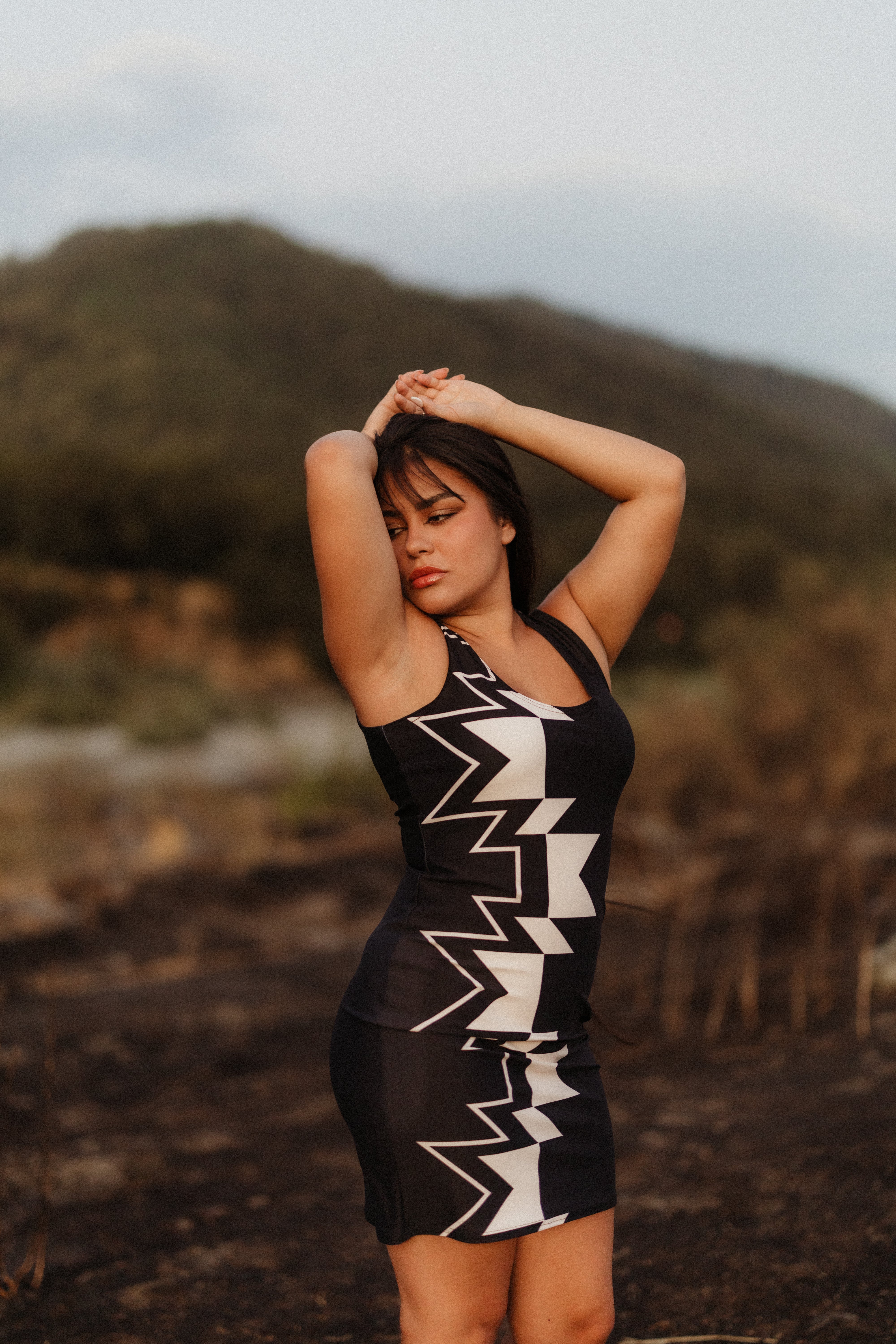 Make a statement and look fabulous in this all-over printed, fitted dress.