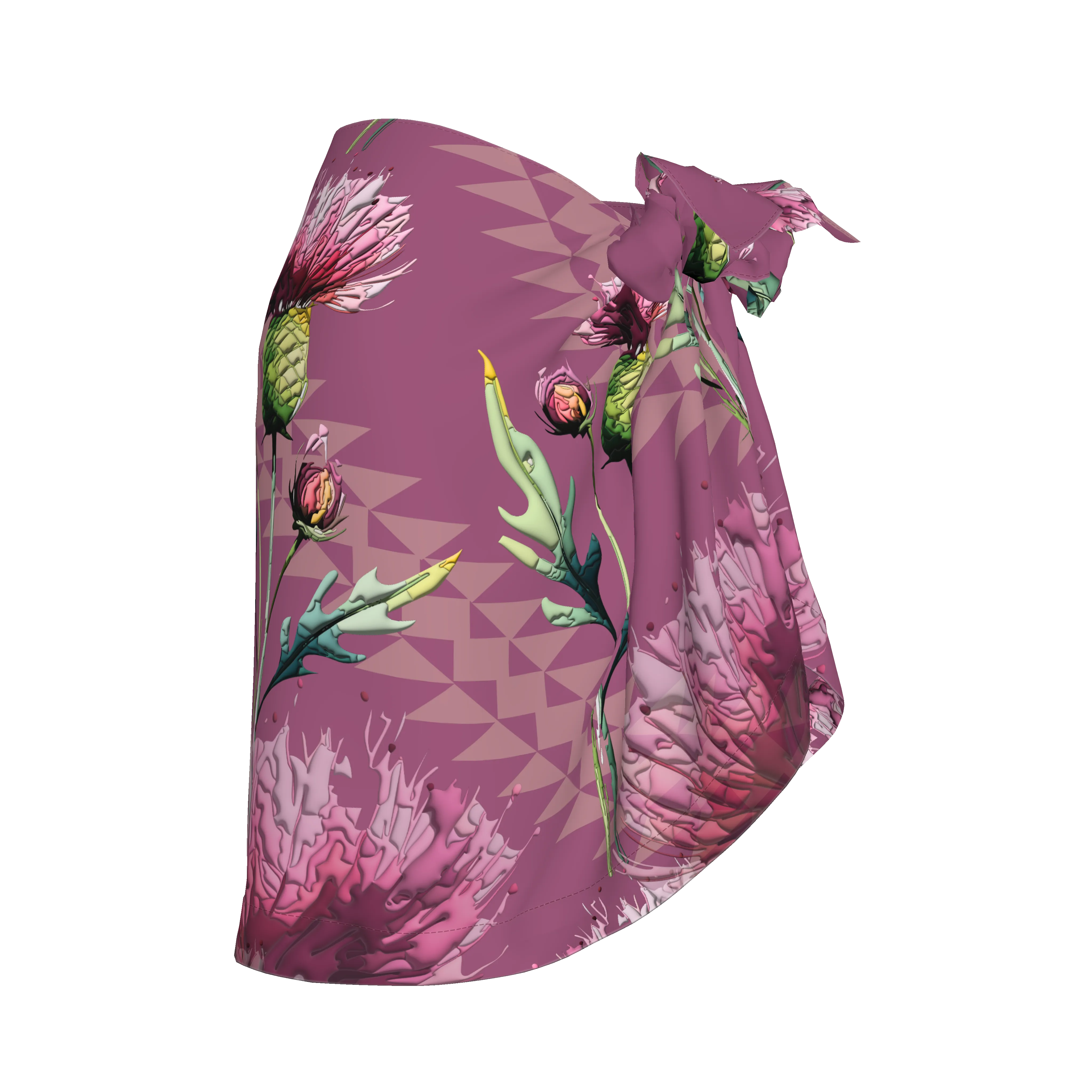 Wrap in wild bloom. Our Cali Thistle Sarong in crisp cotton poplin drapes light and breathable, pairing native thistle artwork with subtle geometric motifs—from shoreline cover-up to dinner-ready wrap.