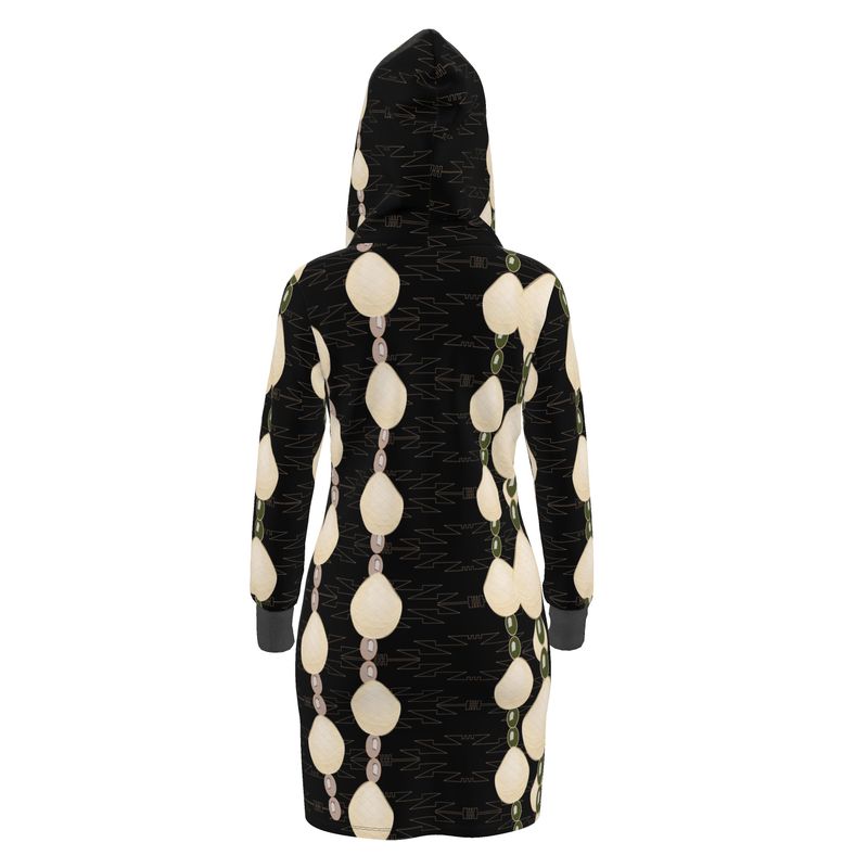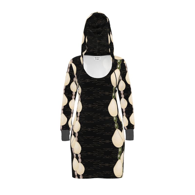 This cozy and stylish hoodie dress is perfect for a relaxed day out or a night in. The soft and comfortable fabric, combined with the relaxed fit, makes it the perfect choice for any occasion. The unique clam shell design, inspired by the rich cultural heritage of the Yurok, Hupa, and Karuk tribes, adds a touch of sophistication and uniqueness.
